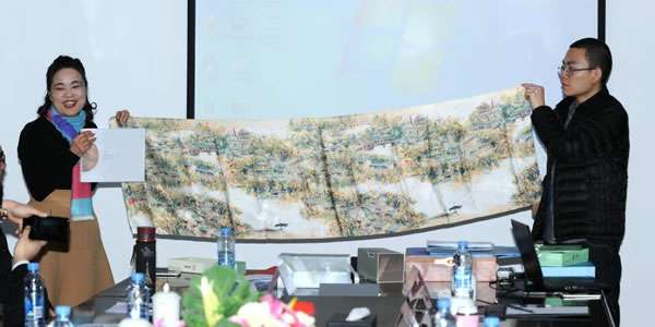 在非物质文化遗产创新传承成功经验分享程序座谈中,来自江苏苏州,河北蔚县、曲阳的非物质文化传人也与大家共同分享了各自的主题议题。世界非物质文化遗产大会中国区副秘书长、苏州老万年文化发展有限公司董事长戚春兰。她是多项(金银雕刻,丝绸,旗袍)非遗项目传承人,戚女士主讲了苏州老万年丝绸为一带一路论坛设计“总统夫人礼品丝巾”的感悟。